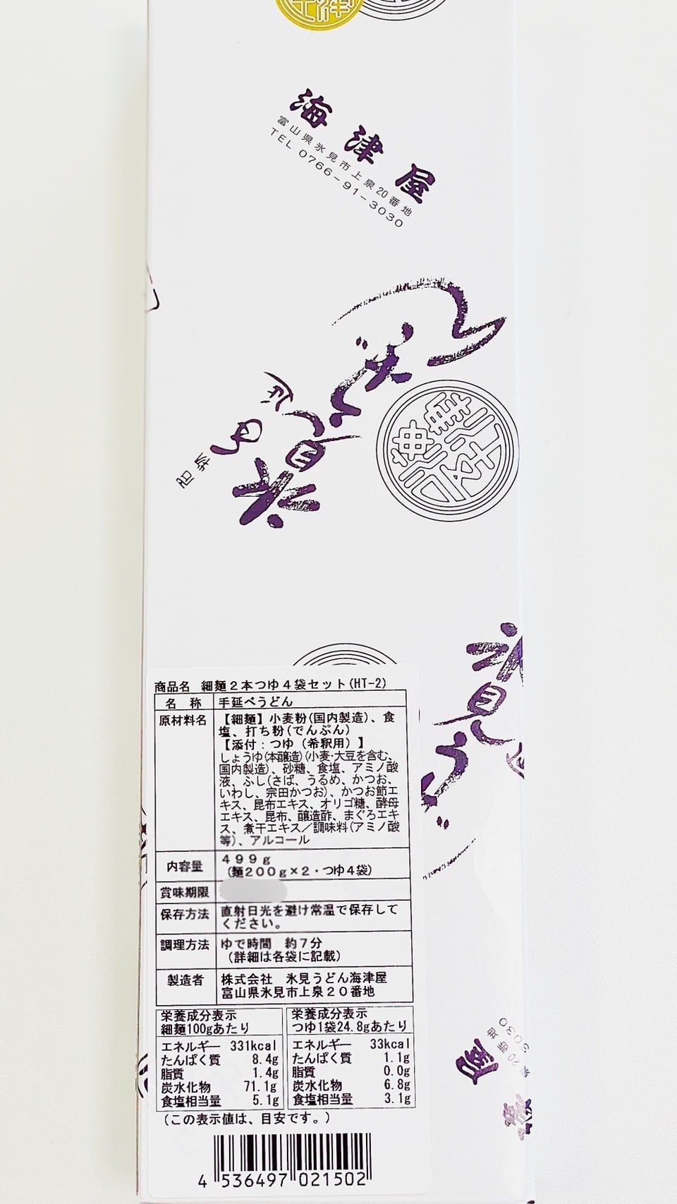 【海津屋】 氷見うどん 細麺2本・つゆ4袋セット